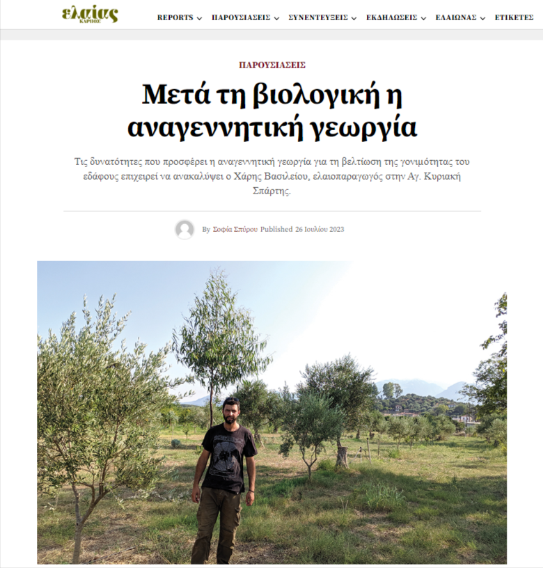 One of our pilot farmers, Charis Basiliou, has been featured in the major farmers’ Greek newspaper “Ελαιας Καρπως”, increasing the reach of regenerative farming in Greece. We have been accompanying Charis’ journey into regenerative production since 2022. Charis’ main crops are pomegranates and olives. Explore our “pilot farms” section to learn more about his farming operation. Read it in Greek!